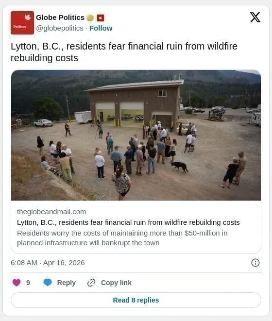 在2021年毁灭性山火几乎夷平全镇之后,位于BC省的林顿(Lytton)正推进大规模重建计划。联邦与省政府迄今已承诺向林顿重建提供超过1.38亿加元资金支持,其中大部分用于公共设施建设。