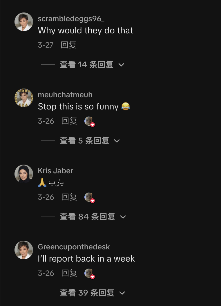 卡戴珊家族的大统领、七旬古稀老人、美国最有流量的女性之一的Kris Jenner,或许怎么都没想到,自己在晚年还能发一次来自大洋彼岸的财:中国年轻人集体换上了她的头像。