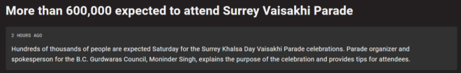 加拿大素里Vaisakhi游行,60万人庆祝