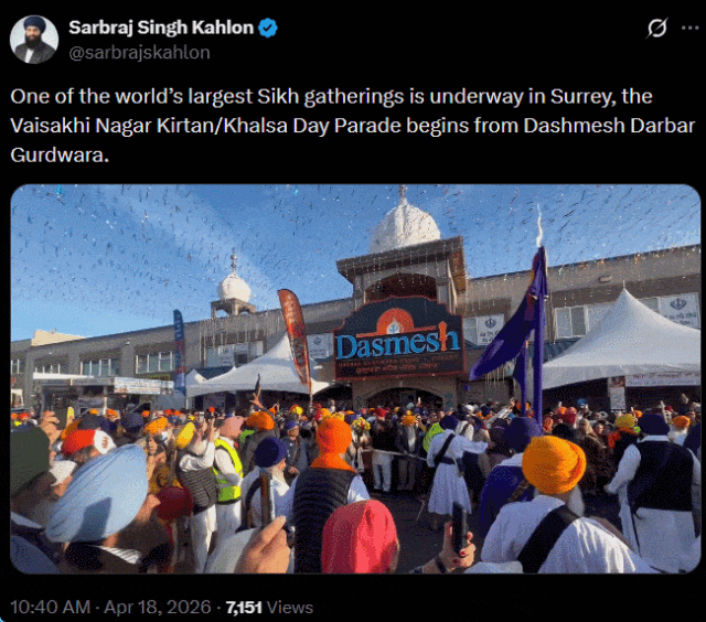 加拿大总理马克·卡尼(Mark Carney)表示:“Vaisakhi同样是对春季丰收的庆祝——是一个感谢辛勤努力、牺牲与付出所带来成果的时刻。它提醒我们,更新不会凭空发生,收获也不是偶然得来——更好的未来需要被培育、被呵护,并不断成长。”