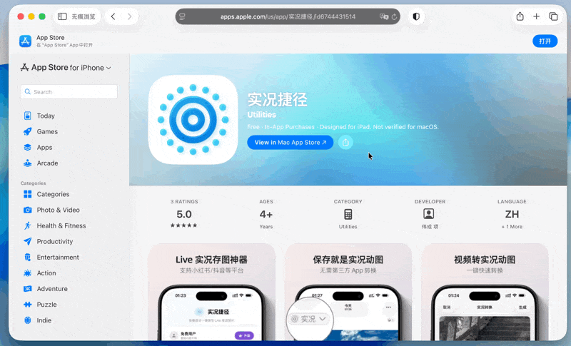 还是以上面的“实况捷径”App 美区链接为例,国内网络直接浏览器输入网址打开,会被强制跳转到国区 Today 首页: