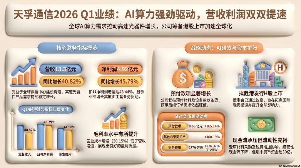 公司在报告中指出,营收增长主要受益于人工智能行业加速发展与全球数据中心建设,高速光器件产品需求持续稳定增长。与此同时,公司已获股东会批准,拟赴港发行H股并在香港联合交易所主板挂牌上市,资本扩张步伐加快。