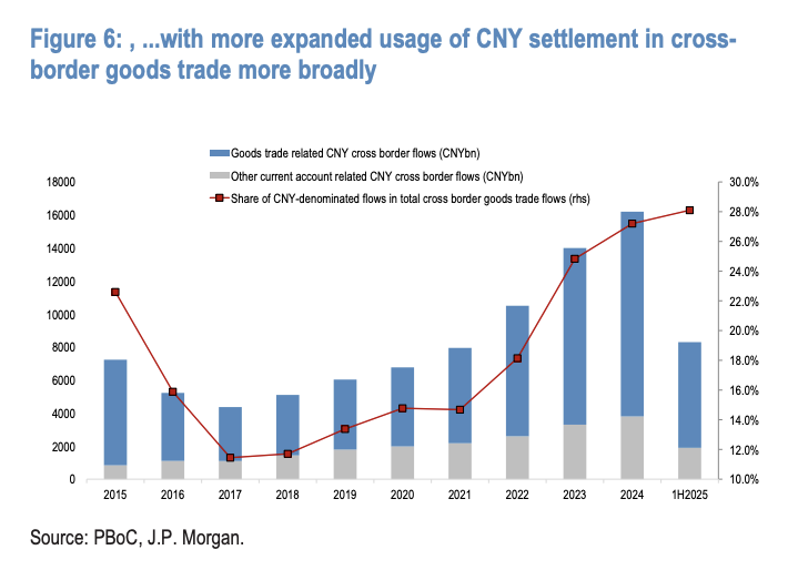 除企业结汇外,人民币作为全球交易货币的地位提升,正为其中期走强提供支撑路径。