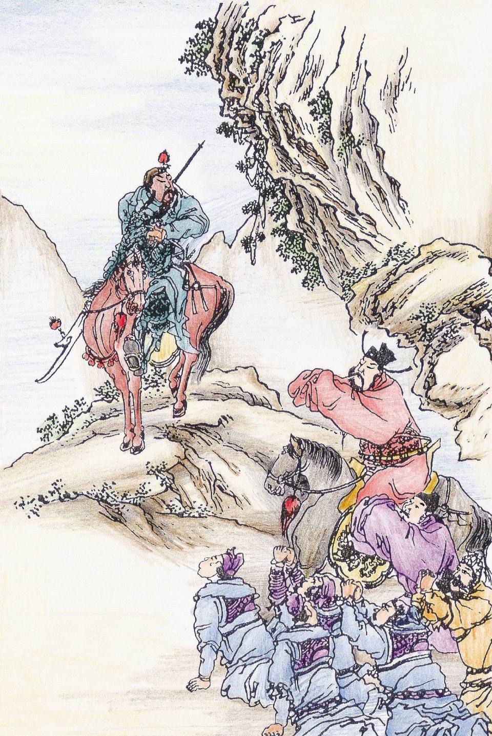 “关云长义释曹操”,《三国演义》第五十回插图。(视觉中国 图)