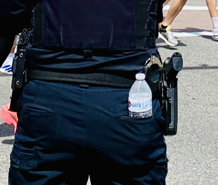 右面戴帽子的胖警察像电影里的人。不是帅,是他那顶帽子。
