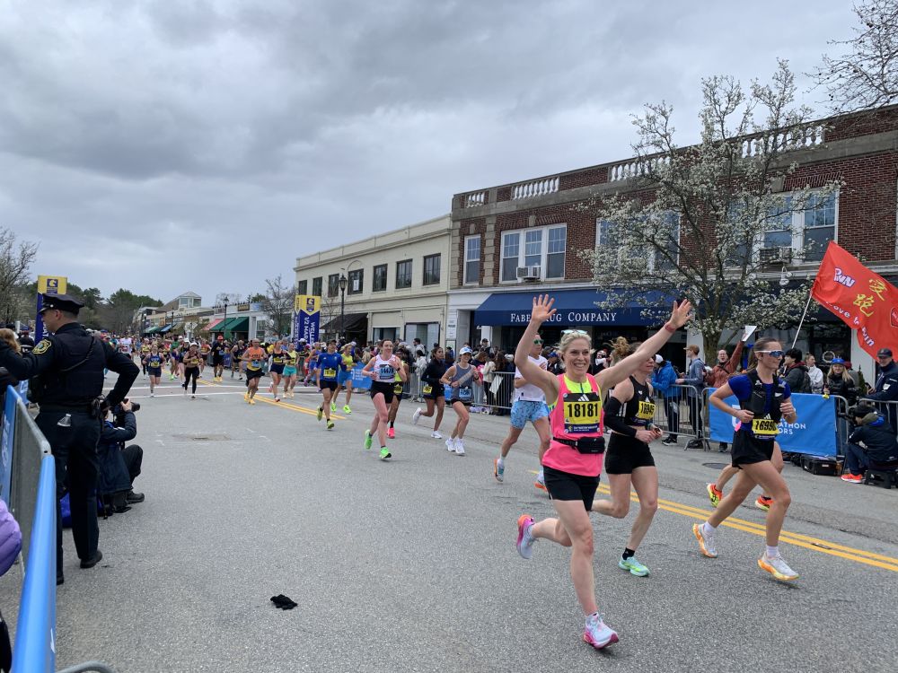 今年看波马有几点感受。第一是孩子多。尤其是小小孩。第二是亚裔跑者比较开心活跃。过去看到他们一直低头往前冲的多。今年有好几个人和鼓掌的观众互动。也许那是他们的家人或朋友。我们的朋友也在跑。他去外州读医学院。回来跑。可惜我没看到他。第三点,可能是天有点凉。搞怪的奇装异服不多。也许在后面。