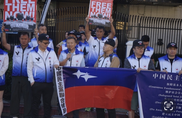 上周日(19日),中国民主党联合总部共七八十名成员聚集在洛杉矶中领馆外抗议,英国和加拿大的中国民主党成员也同步抗议声援。