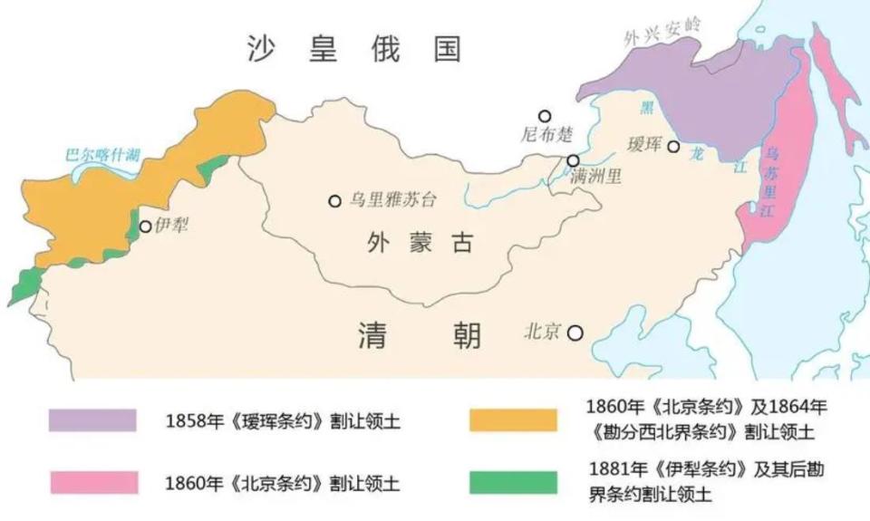 因此,1858年到1860年,沙俄通过两份条约《瑷珲条约》和《中俄北京条约》拿下了东北100多万平方公里的土地,现在这里被称为外东北。