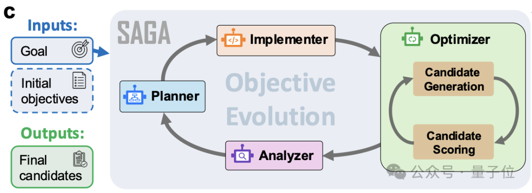 相比于科学家需要基于自己的经验和知识去选择目标函数的权重组合,或者直接浪费大量计算资源暴力搜索,SAGA 能够靠自身框架实现快速迭代。