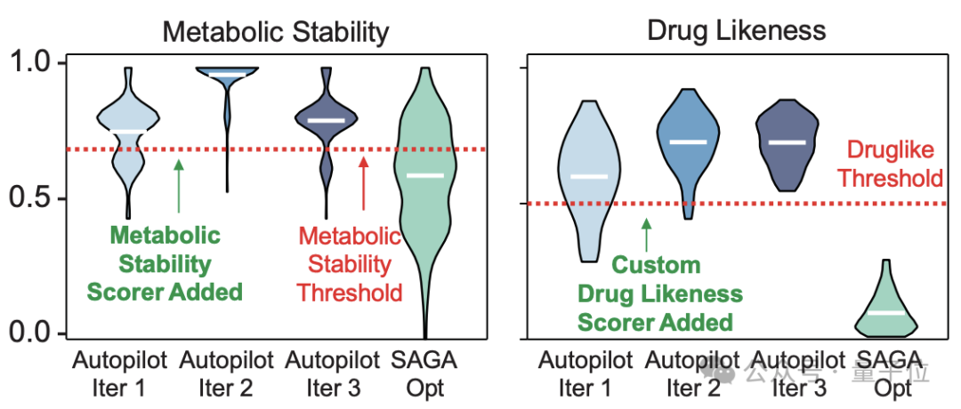 于是,SAGA 发出 “小心伯胺” 警告,并在代码中主动加上了一个新约束:“加一个代谢稳定性评分器”。