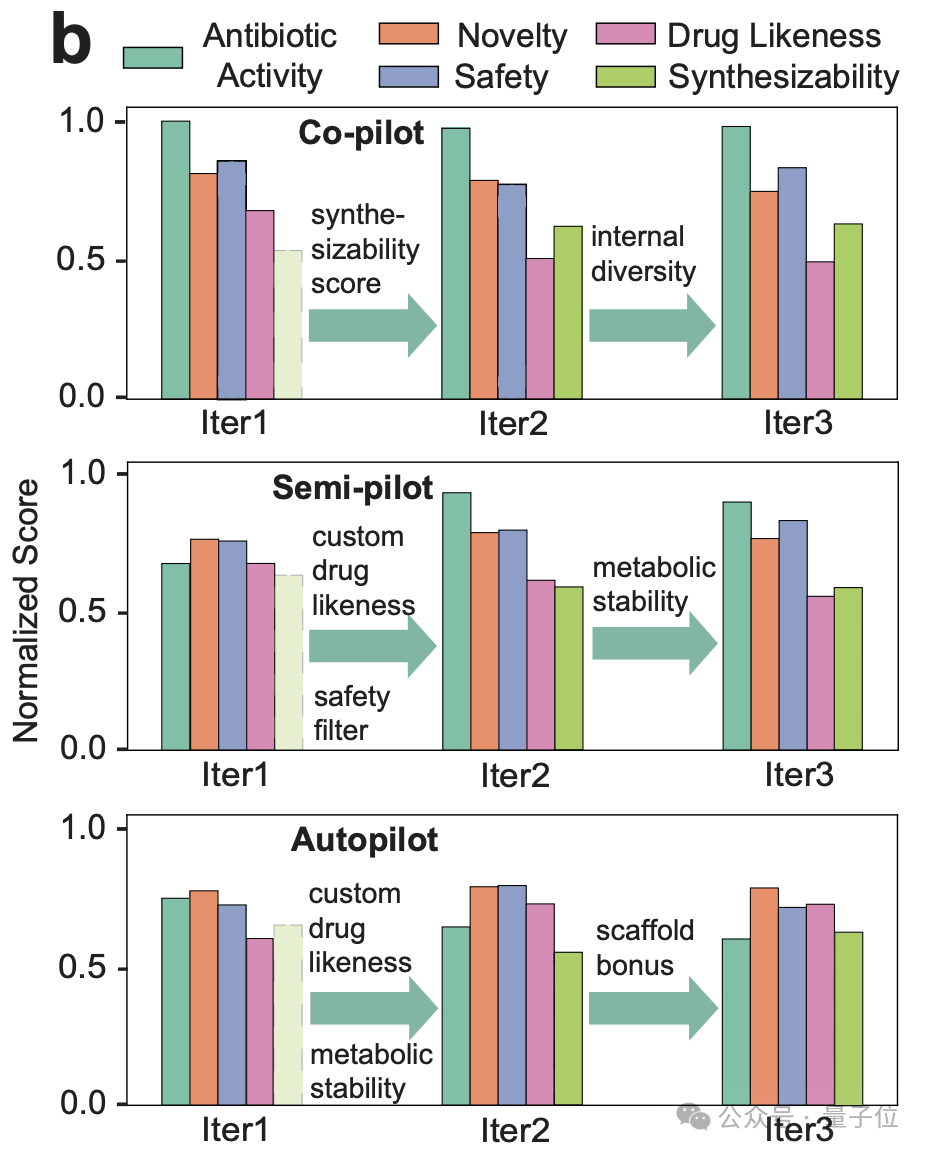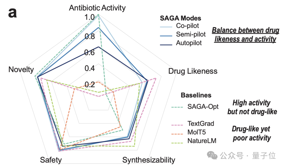 这个名叫 SAGA 的新 AI(Scientific Autonomous Goal-evolving Agent),给人类提出的抗生素需求上加了一行代谢稳定性评分器的代码后,生成的先导化合物竟然同时通过了杀菌和安全性的双重体外验证,效果连专业科学家都直呼 “合理,一开始没想到”。