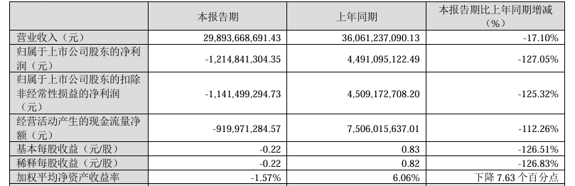 另一家上市猪企牧原食品股份有限公司(牧原股份)在4月22日发布的《2026年第一季度报告》中也表示:“营业收入29,893,668,691.43元,2024年36,061,237,090.13元,同比下跌17.10%;归属于上市公司股东的净利润亏损1,214,841,304.35元,2024年4,491,095,122.49元,同比下滑127.05%;归属于上市公司股东的扣除非经常性损益的净利润亏损1,141,499,294.73元,2024年4,509,172,708.20元,同比下滑125.32%。”显示公司同比由盈转亏。另外,公司经营活动产生的现金流量净额也由正转负,下滑112.26%。