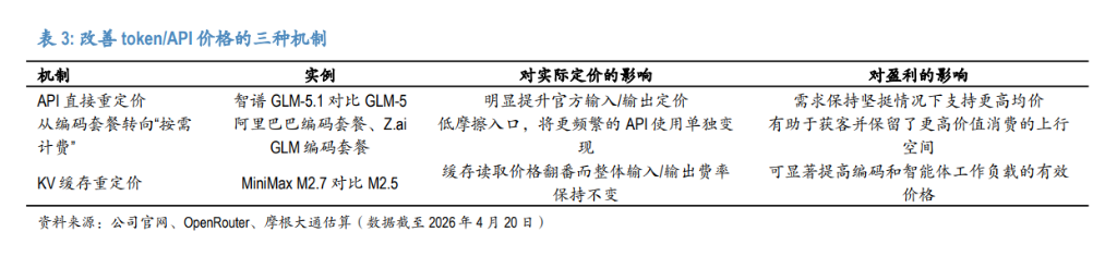 第三,KV缓存重定价。 这是最容易被忽视的一条。MiniMax的M2.7与M2.5相比,整体输入/输出定价不变,但提示词缓存读取价格从每百万token 0.03美元升至0.06美元。在编码和智能体工作负载中,缓存token的计费权重很高。摩根大通估算,M2.7的有效价格比M2.5高出30%以上——即使表面定价没变。