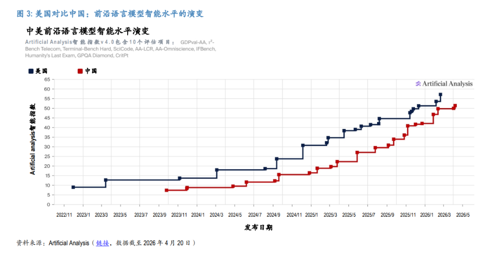 目前,摩根大通认为中美前沿模型差距约为9-12个月,且在快速追赶。这是当前估值的核心支撑假设之一。