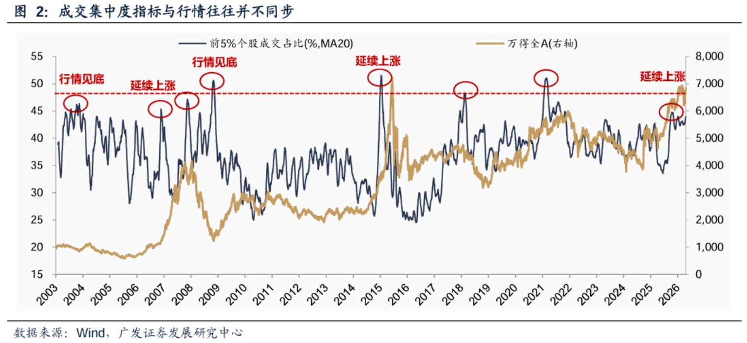 从历史经验看,成交集中度对市场顶部的预警效果有限。
