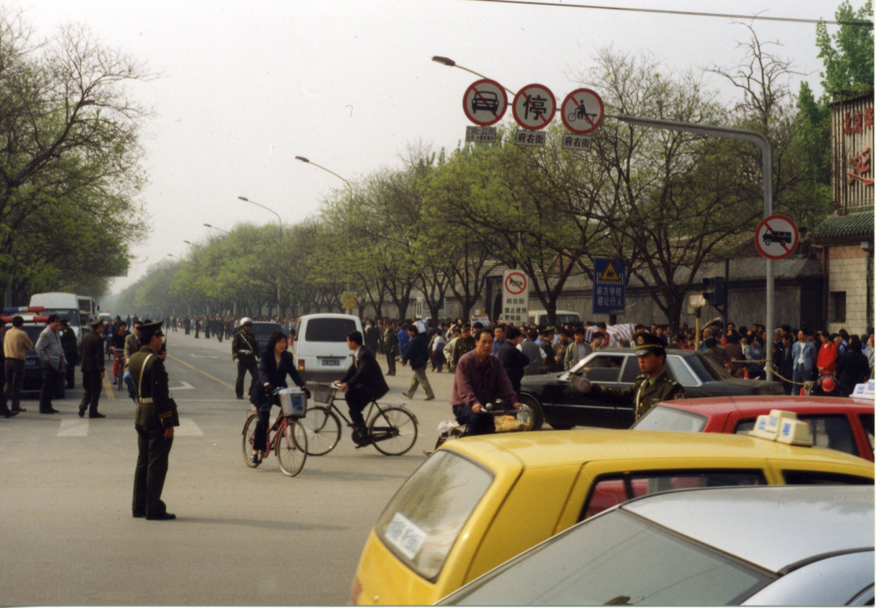 那天,还有一部分警察把法轮功学员从府右街北口引入中南海北边的大街——文津街。这样中南海的西边和北边都站了很多学员。但是,中南海的东面和南面都没有学员。