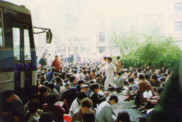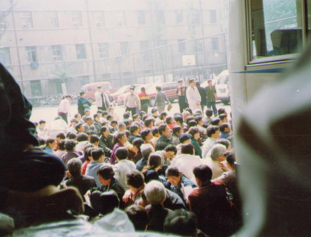 当天中共安插了许多便衣,企图煽动学员,制造事端,引起骚乱。下午2、3点钟时,当时在清华大学就读精密仪器与机械学系的王欣(现居美国)看到,有一个女子骑着电单车,戴着头盔和口罩,来到学员跟前,鼓动大家去怎么做怎么做,似乎要把事情闹大。