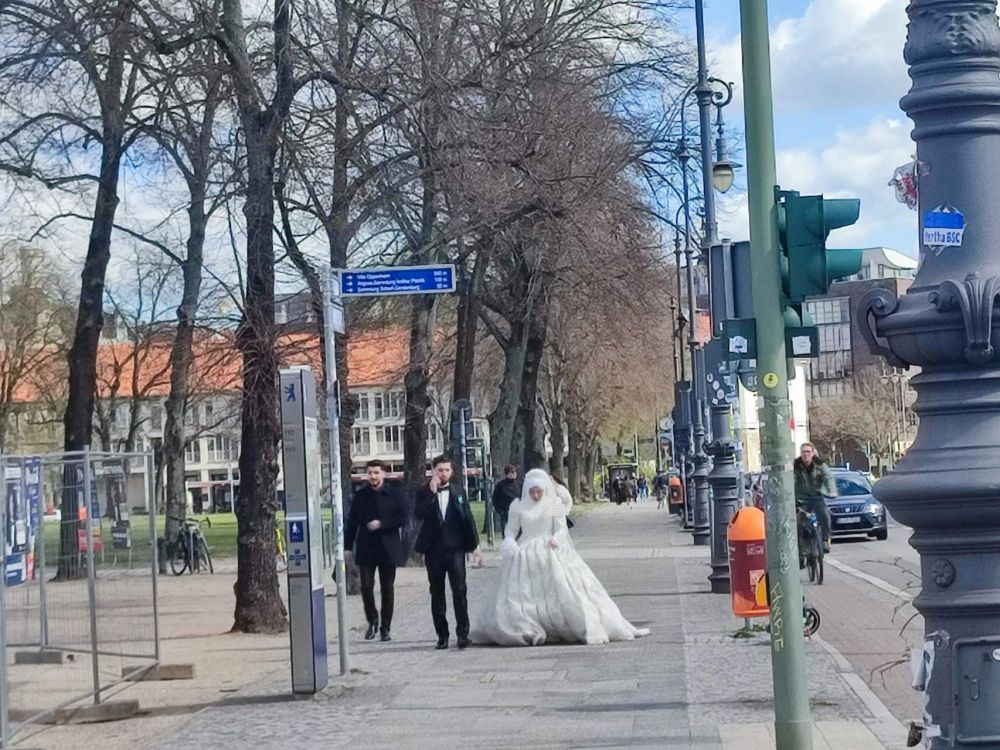 路边有一对新人,模样像是土耳其人,看样子是要到里面拍婚纱照的。新娘的裙子很大,风一来,裙摆就起一阵小小的浪。您看,今天拍婚纱照,打扰的人少,出片效果肯定好,人少自然有人少的好处。