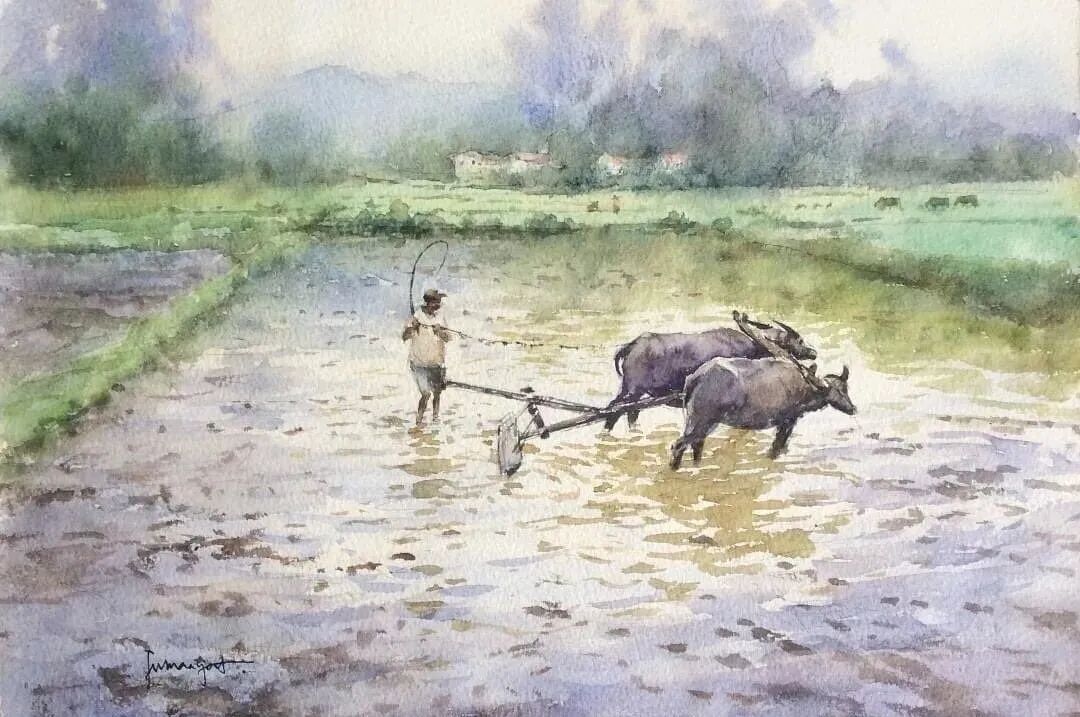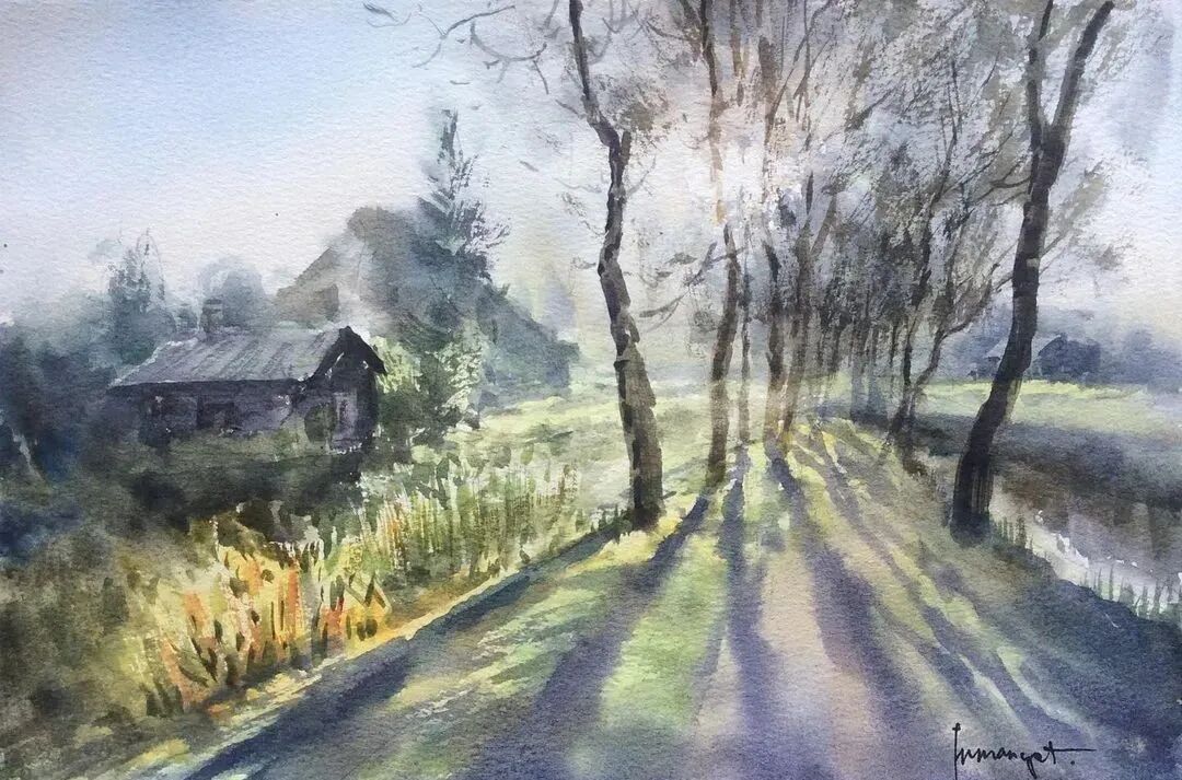 无水不成彩,饱含烟火气息的水彩