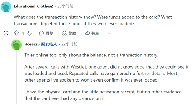 也有评论指出,WestJet 理论上应能查询礼卡的使用记录。有网友建议将 Costco 购物小票发给 WestJet,查证卡是否在购买前就被用掉。但发帖人反馈,WestJet 只承认卡曾被激活和使用,却拒绝透露更多交易细节,令维权陷入死胡同。