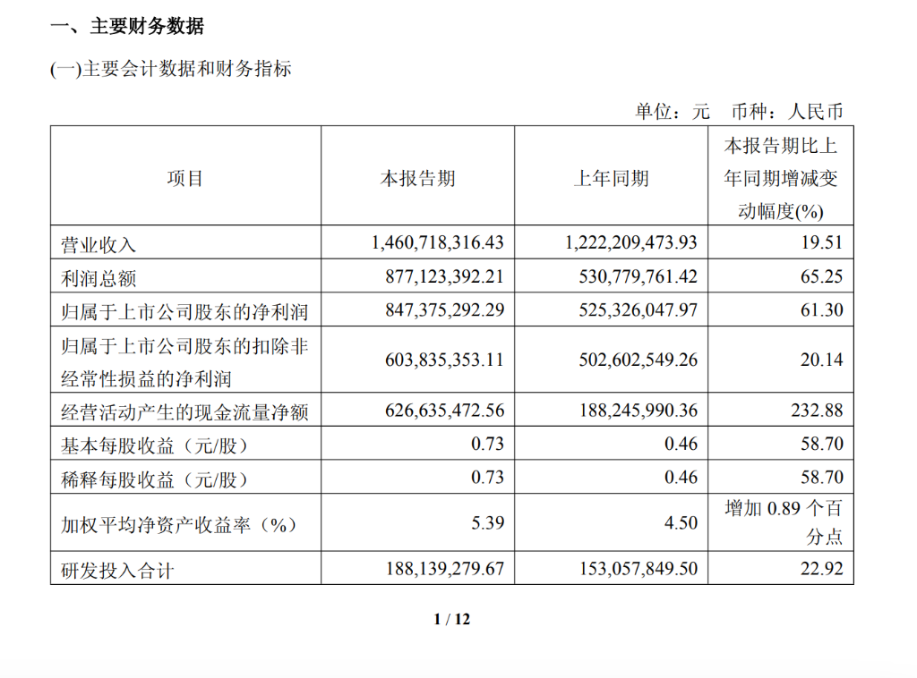 此外,投资收益及公允价值变动收益合计2.33亿元,同比增长逾12倍,亦对净利润形成重要补充。剔除股份支付费用1.00亿元(税后影响约0.95亿元)后,调整后归母净利润达9.42亿元,同比增长56.7%。