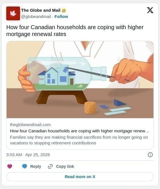 整体而言,加拿大房贷市场虽未出现系统性危机,但对普通家庭的挤压正在真实发生——从削减生活品质到动用储蓄,再到改变人生规划,高利率的影响正在逐步显现。