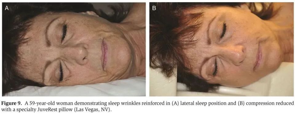 这些睡眠纹常见于额头、鼻侧、脸颊和眼下方,较少出现在下巴。睡眠纹与年龄相关,有睡眠纹的女性也表现出更严重的皮肤老化迹象。