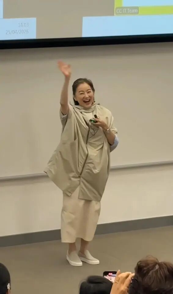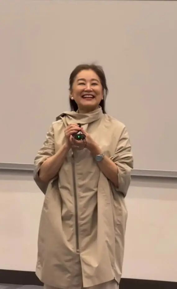但真正让现场师生和网友破防的,是她在讲座前夜的一个小插曲。据现场透露,林青霞在讲座前一晚不慎从床上跌落,导致两根肋骨骨折。然而,这位71岁的影坛传奇硬是忍痛坚持完成了整场演讲,全程状态在线,谈笑风生。这一细节被曝出后,评论区直接炸了:“骨折了还坚持上台,这敬业程度,现在的流量明星学学吧。”