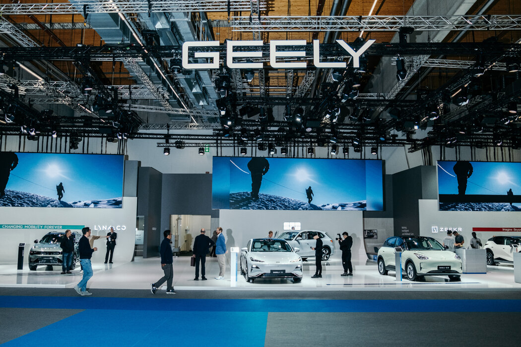 2024年法兰克福国际汽车零配件及售后服务展览会上展出的吉利汽车。过去一年里,该公司对欧洲、中东及其他地区的出口额增长了一倍多。 FELIX SCHMITT FOR THE NEW YORK TIMES