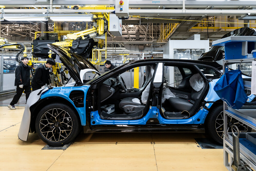 吉利生产极氪车型的宁波工厂的装配线。 QILAI SHEN FOR THE NEW YORK TIMES