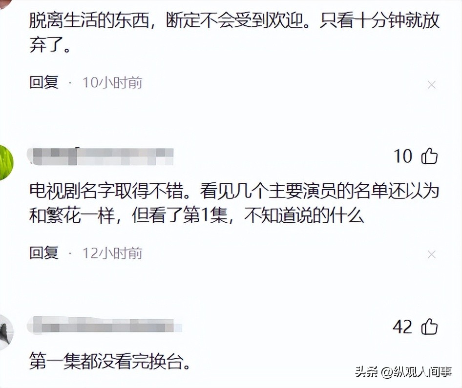 有网友直言:“看演员名单以为是《繁花》级别的作品,结果看了第一集全程摸不着头脑”;