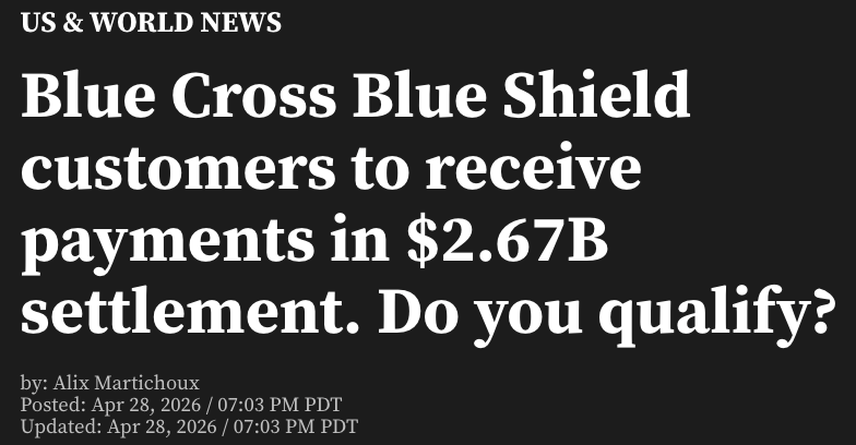 根据最新消息,在法院批准多年后,涉及金额高达26.7亿美元的蓝十字蓝盾(Blue Cross Blue Shield)集体诉讼和解案即将进入实际赔付阶段,预计从5月起,相关款项将陆续发放至符合条件的申请人账户。