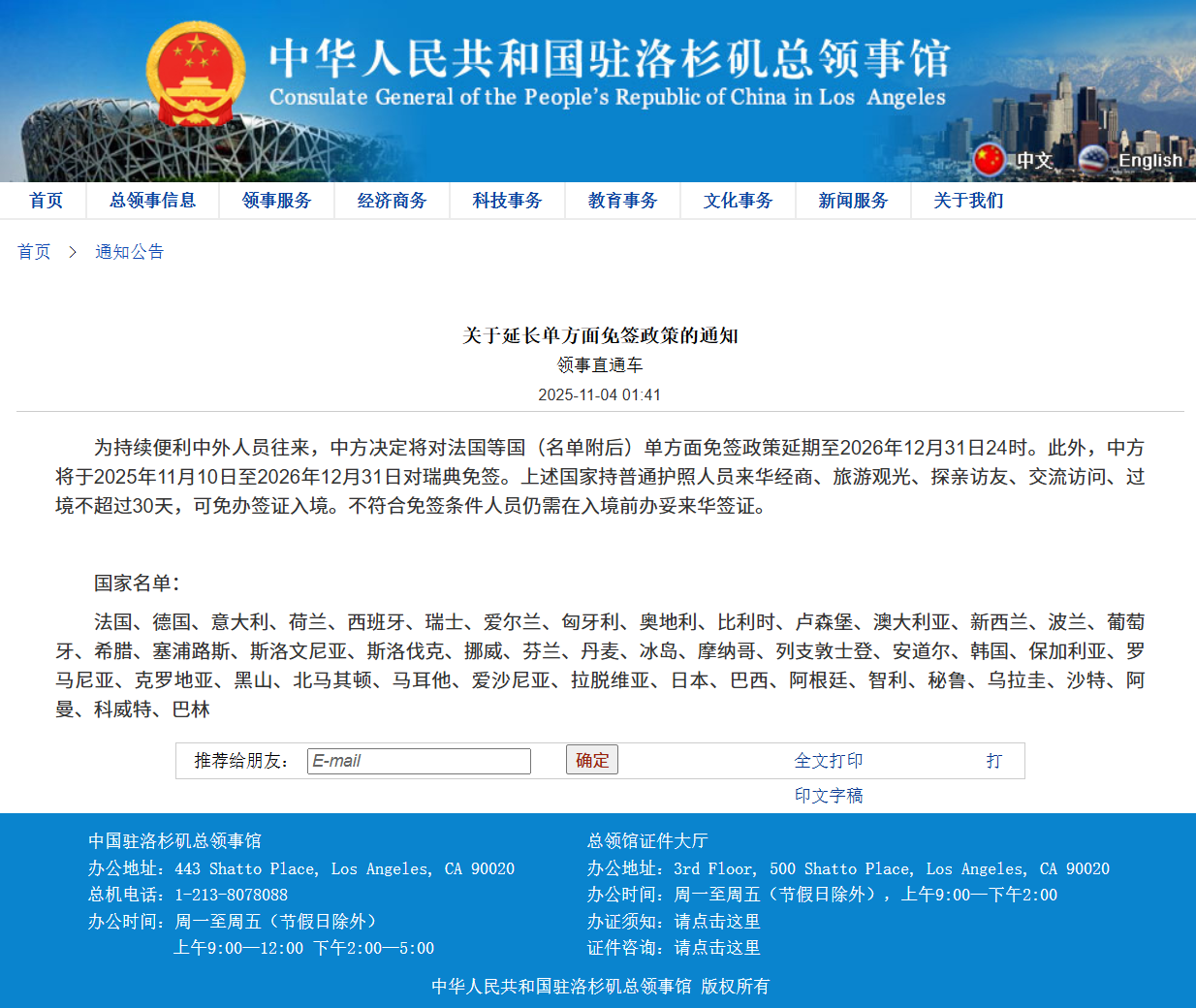 延长部分国家单方面免签政策